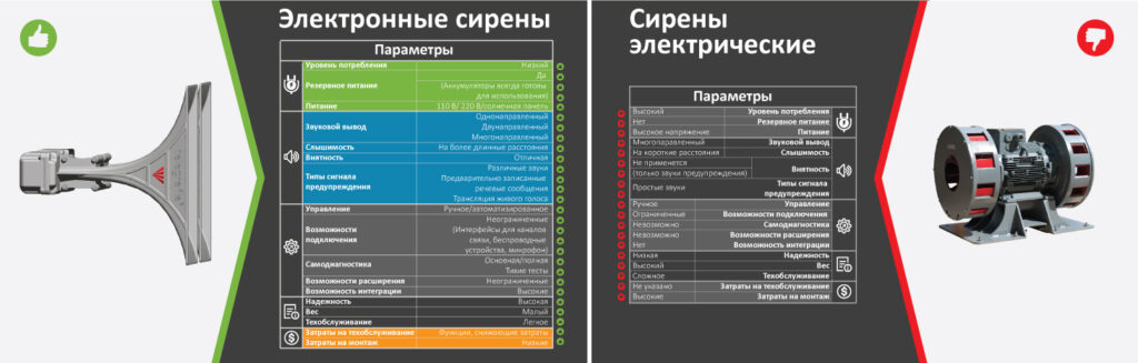 Во-первых, старые сирены с электроприводом потребляют большое количество энергии и требуют постоянную подачу электропитания для обеспечения надлежащей работы, причем электронные сирены располагают аккумуляторами, которые постоянно заряжаются и характеризуются очень низким потреблением энергии.Поэтому операторы сирена могут быть уверены, что резервные источники питания обеспечат работоспособность сирен во время отказа подачи питания, что часто происходит в чрезвычайных ситуациях. Установка резервного источника питания для сирен с электроприводом представляет собой более дорогостоящий вариант.
