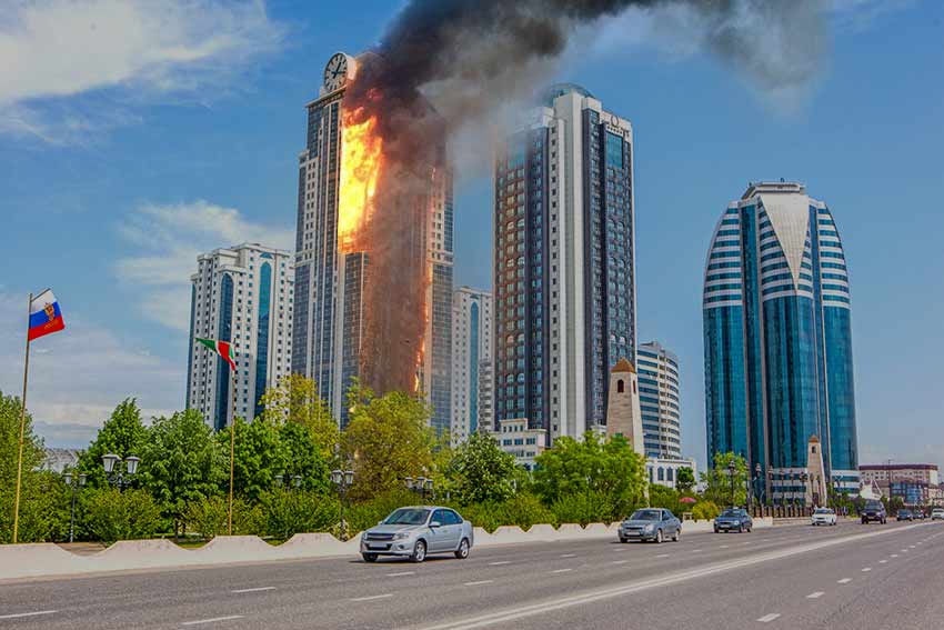 Следующий пример — пожар в здании. Чем больше город, тем выше здание, выше здание – больше людей в нем, больше людей – тяжелее эвакуация, тяжелее эвакуация – выше риски погибнуть во время пожара.